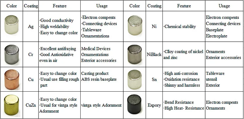 Dirección magnética, la cantidad. Recubrimiento de superficie (si es necesario).